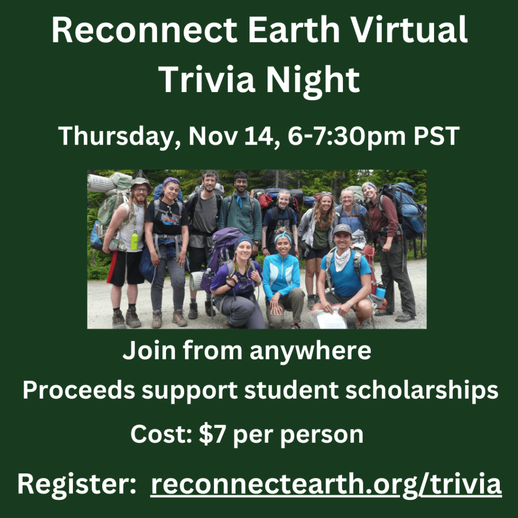 After a year of reorganization and building new alliances, Reconnect Earth will be returning to the field in Summer 2025. For the first time ever, students will experience Reconnect Earth’s groundbreaking curriculum while earning college credit through a new Western Washington University class. And, we’ll continue offering low-cost programs open to all college-age students.