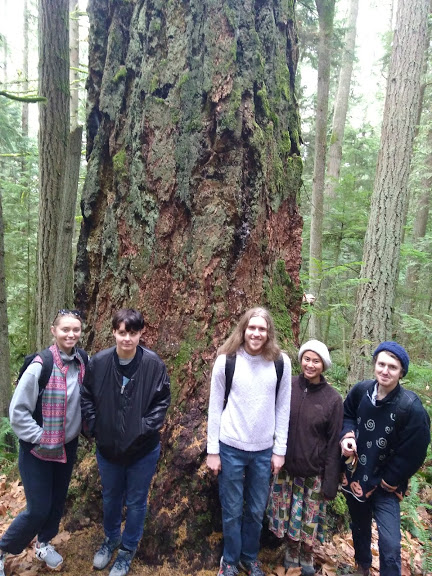 This past Sunday Reconnect Earth set out on our last weekend day trip of the Fall 2019 season, a hike through Stimpson Forest Nature Reserve on the edge of Bellingham. This tract of land, part of the homeland of the Lummi Nation since time immemorial, is unique in that while some logging has occurred there over the past century it has never been completely clear-cut and some trees hundreds of years old are still standing as they have for centuries. The reserve has characteristics of an old growth forest including not just big trees, but abundant fallen woody debris, snags, and a multi-layered understory. It is truly a beautiful place.